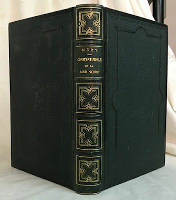 97. - MERY : Constantinople et la Mer Noire. P. Belin-Leprieur et Morizot 1855. In-4° plein chagrin "vert bouteille", dos à nerfs orné d'encadrements et de compositions dorées, tranches dorées, 495 pages (rousseurs, manque une gravure en noir). 200 €